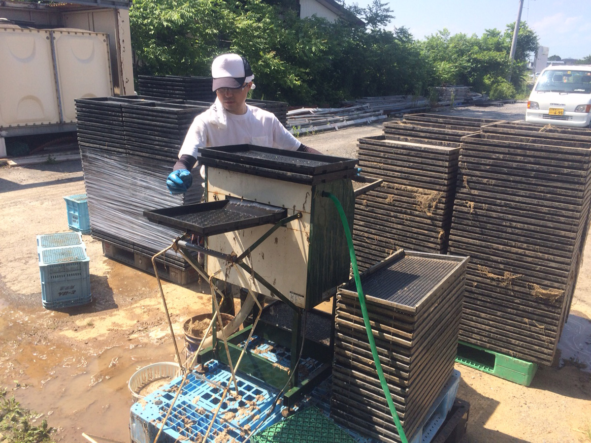 5千枚ちかい育苗箱を、ひとつひとつ洗っていく作業。